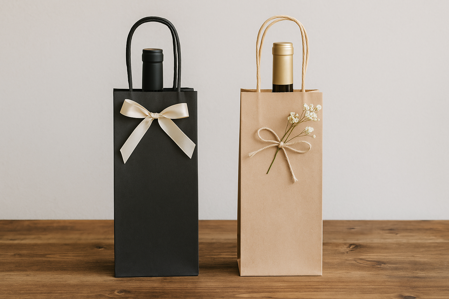 Na našom e-shope nájdete papierové tašky na víno v rôznych štýloch: elegantné pre mužov, jemné pre ženy aj univerzálne prírodné varianty. Vyberte si tašku, ktorá doladí váš darček presne na mieru.