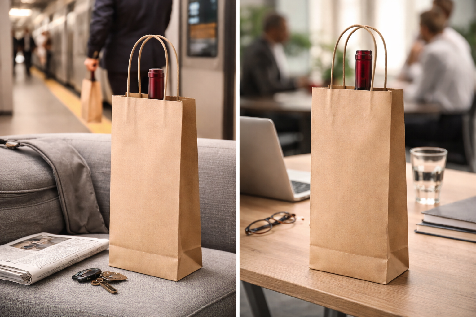 Nie každá fľaša vína smeruje na oslavu. Niekedy si ju zákazník kupuje k večeri, na víkend alebo len „pre istotu domov“. V takom prípade môže výrazná darčeková taška pôsobiť prehnane. Jednoduchá papierová taška bez výraznej potlače je praktickejšia a prirodzenejšia.