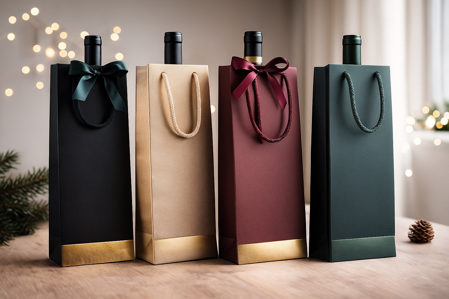 Chcete, aby vaše vianočné víno pôsobilo profesionálne, krásne a hodnotne? Vyberte si z našej ponuky pevných, štýlových a cenovo dostupných tašiek na víno, ktoré ľudia naozaj nevyhadzujú. Kraftové, čierne, biele, farebné aj luxusné varianty s textilným uchom – presne tie, ktoré z darčeka robia zážitok.